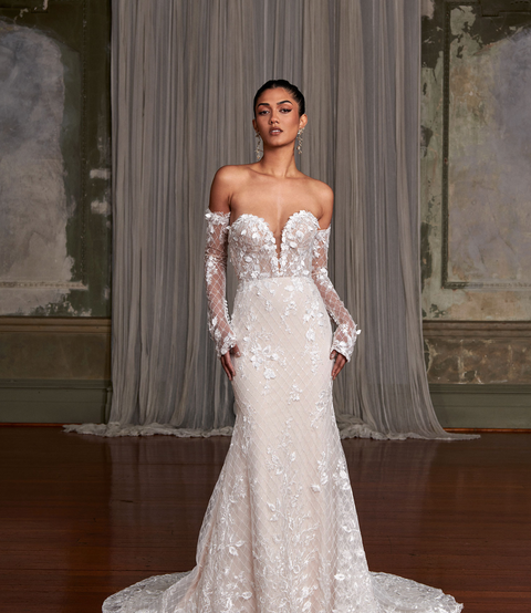 contemporary bridal gowns that represent the women who wear them. Individuality, boldness, and femininity are found in each & every style.